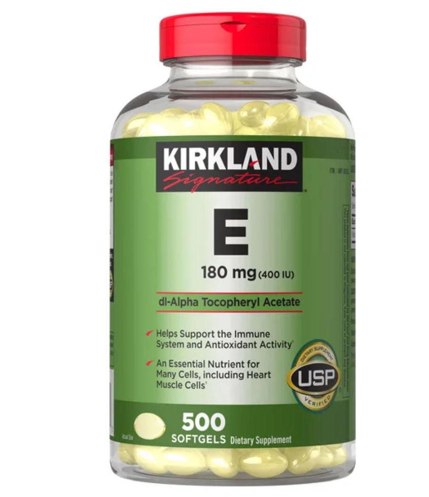 Vì cơ thể không thể tự sản xuất Vitamin E, nên cần bổ sung qua chế độ ăn uống để duy trì sức khỏe. Kirkland Signature™ Vitamin E cung cấp 180mg (tương đương 400 IU) Vitamin E trong chỉ 1 viên nang mềm mỗi ngày.